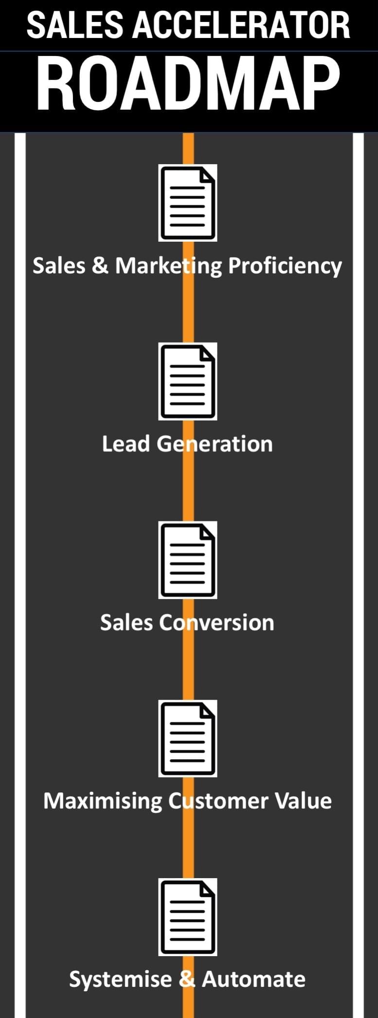 • LOW-COST TO IMPLEMENT: Better still, the solutions are low-cost – often even zero cost - to implement. With the Sales Accelerator ROADMAP you can grow your business without breaking the bank and still achieve outstanding results even on a shoestring budget if necessary.